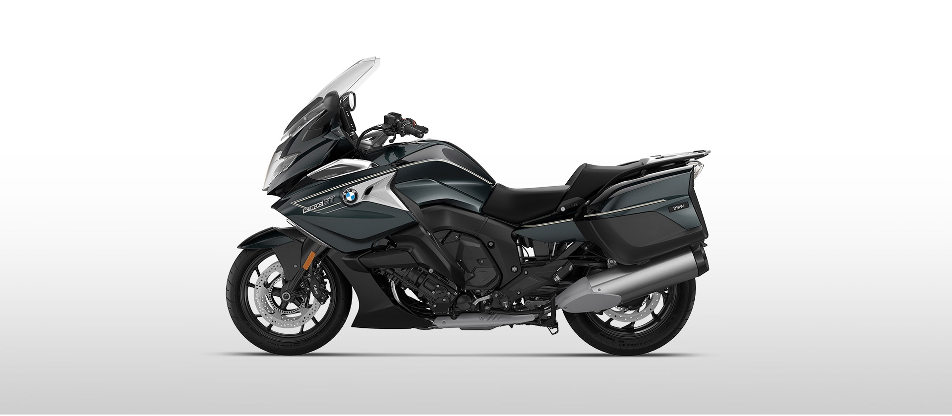 ¿Cuánto color necesitan el confort, el dinamismo y el lujo? La K 1600 GT en negro tormenta metalizado responde a esta pregunta de forma muy clara: desde el bastidor, pasando por el asiento, hasta las aletas deflectoras de aire.
