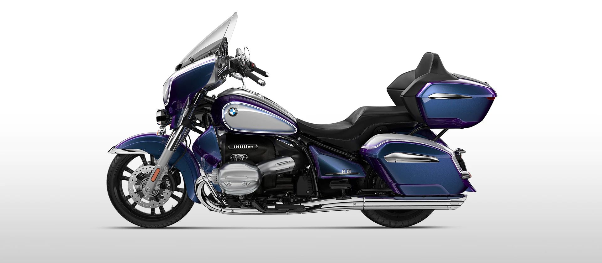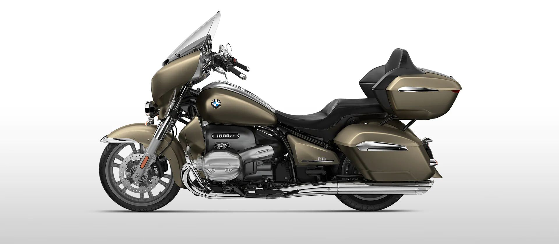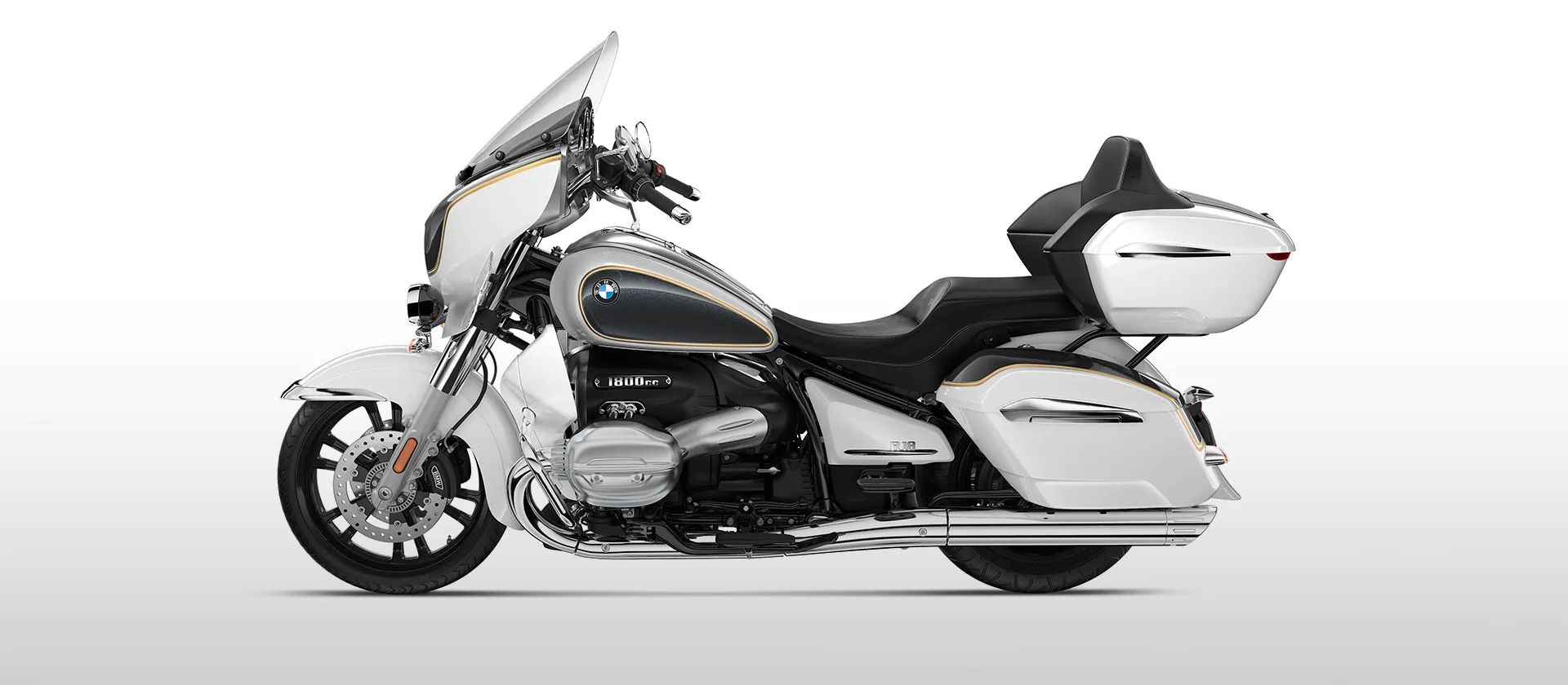 Parece como si los kilómetros se deslizaran por la R 18 Transcontinental. El generoso guardabarros y el impresionante frontal con sus dos faros complementarios son el preludio de la elegante aerodinámica. El depósito de 24 litros, las estriberas, parabrisas y el topcase con respaldo para el acompañante complementan este conjunto tan definido.